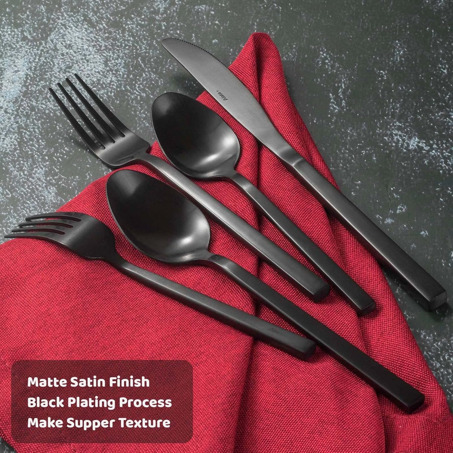 Be the first to review “Alata Cube Black 20-Piece Forged Silverware Set Stainless Steel Flatware Set,Service for 4,Matte Satin Polished Cutlery Set,Dishwasher Safe”
