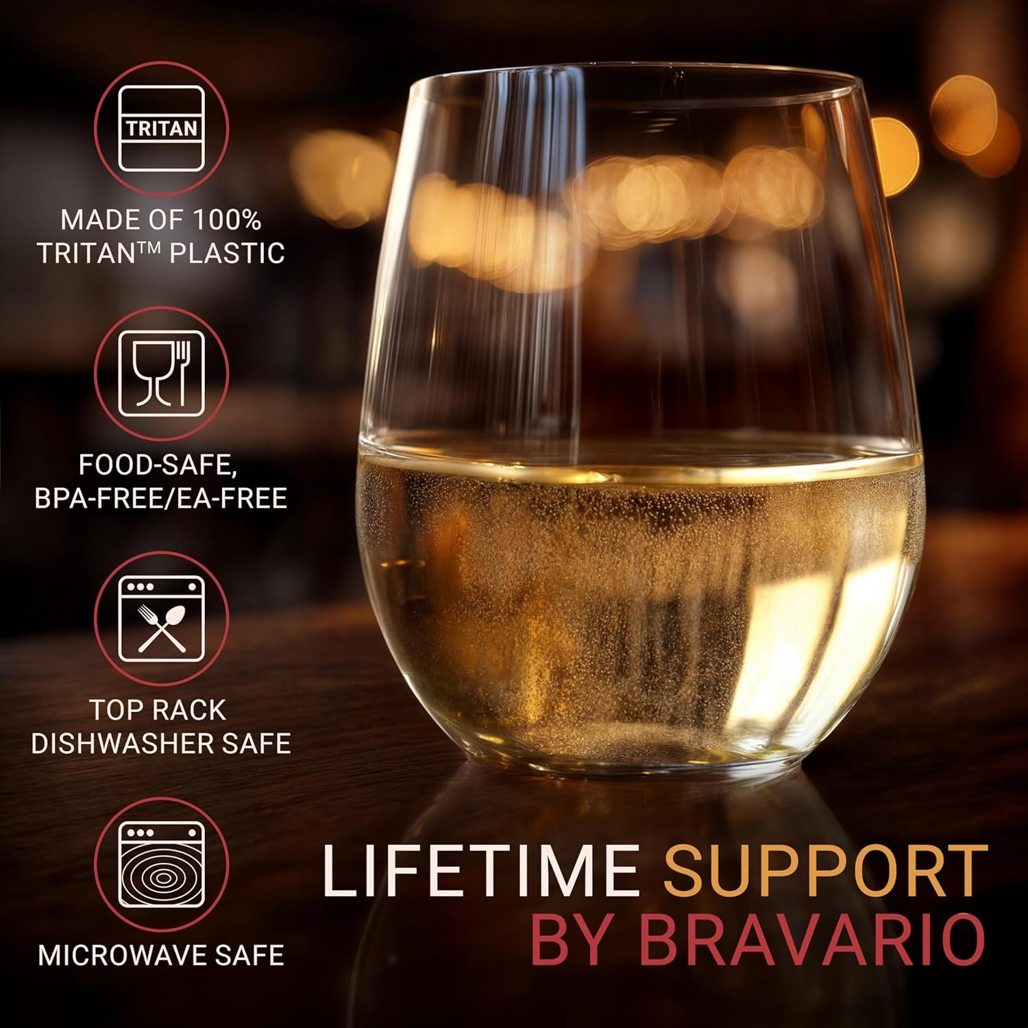 Unbreakable & Indestructible: Crafted from heavy-weight 80g Tritan Plastic, Bravario shatterproof glasses are built to last, and won’t splinter, crack or shatter when dropped. Drink with peace of mind without worrying about clean-up.