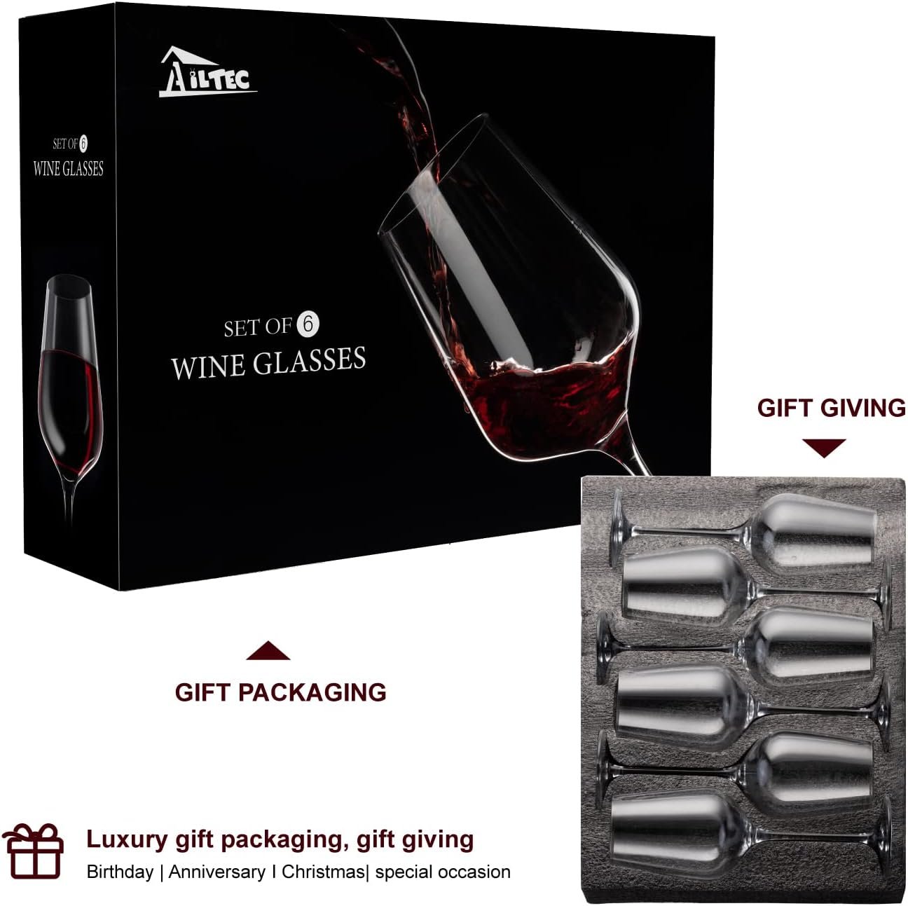 Classy and Reusable Gift Packaging- Make sure glass safety, More eco-friendly and High quality, which even allows you to take your glasses outdoors. Unique color box and wine glass set are perfect choice as gift for Brithday Party, Independence Day, Wedding Anniversay, Newlywed Gifts,Thanks Giving Day, Hallowmas, Christmas day, Hostess Gifts or any special day or occasion.