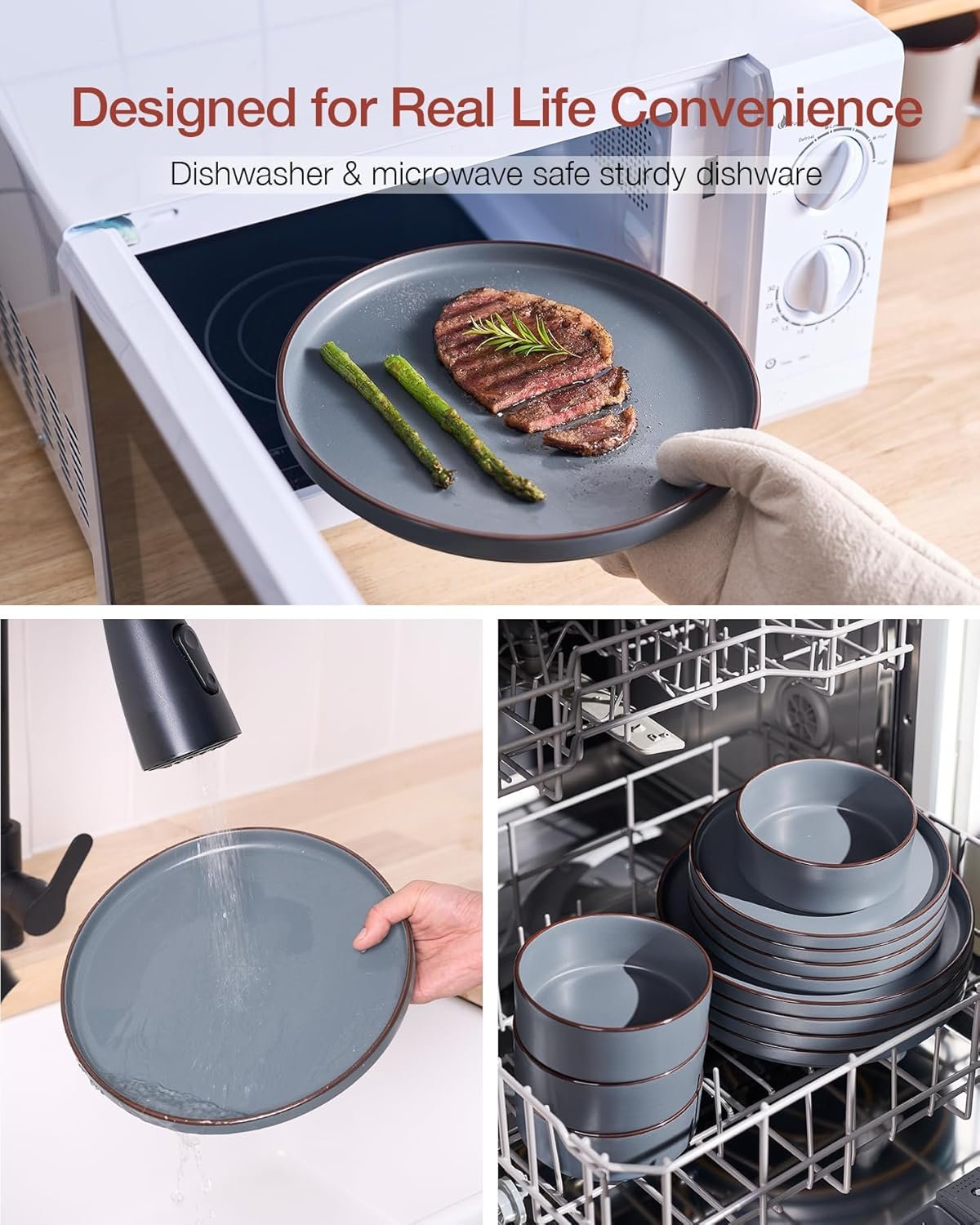 DISHWASHER AND MICROWAVE SAFE: Our dishware sets have passed microwave and dishwasher safe testing at internationally accredited laboratories. Each plate and bowl is dishwasher safe and microwave safe.