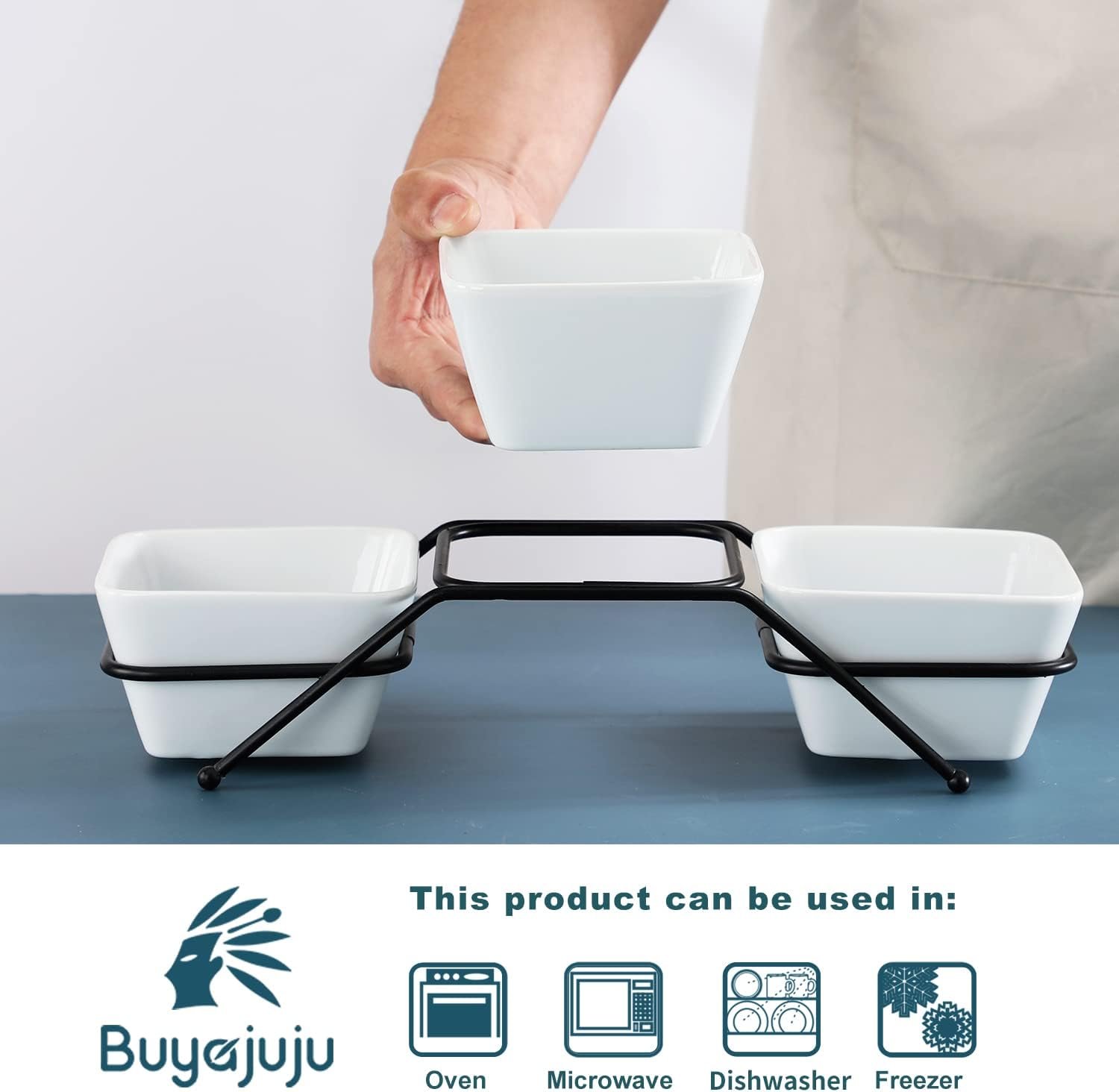 Buyajuju Porcelain Serving Dishes Condiment Dip Sauce Food Server on metal stand