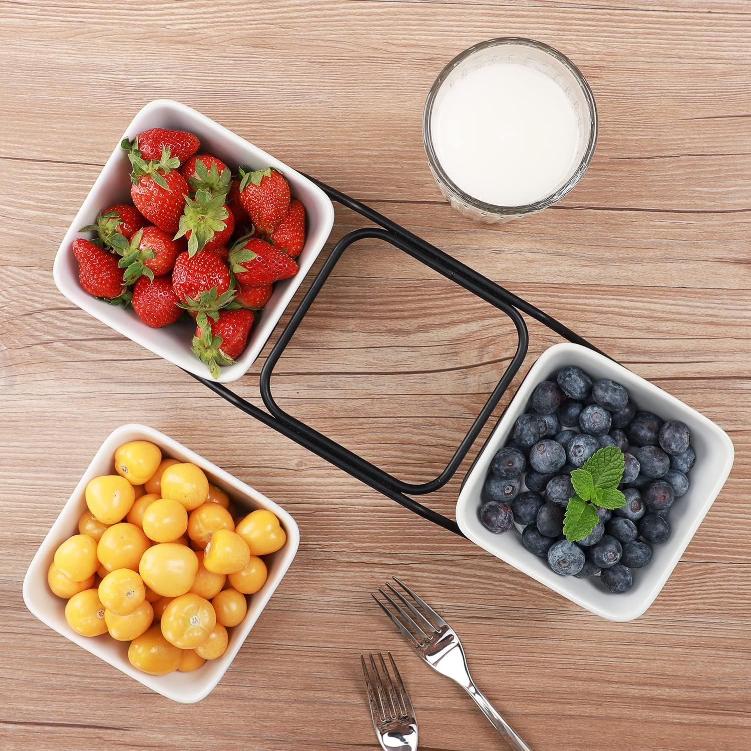 【Sweet Gift】These bowls with metal rack is great for displaying snacks, side dishs or snacks for a tea party. It is attractive, good quality that will be the perfect gift for friend’s housewarming, thanksgiving, birthday party or other occasions.