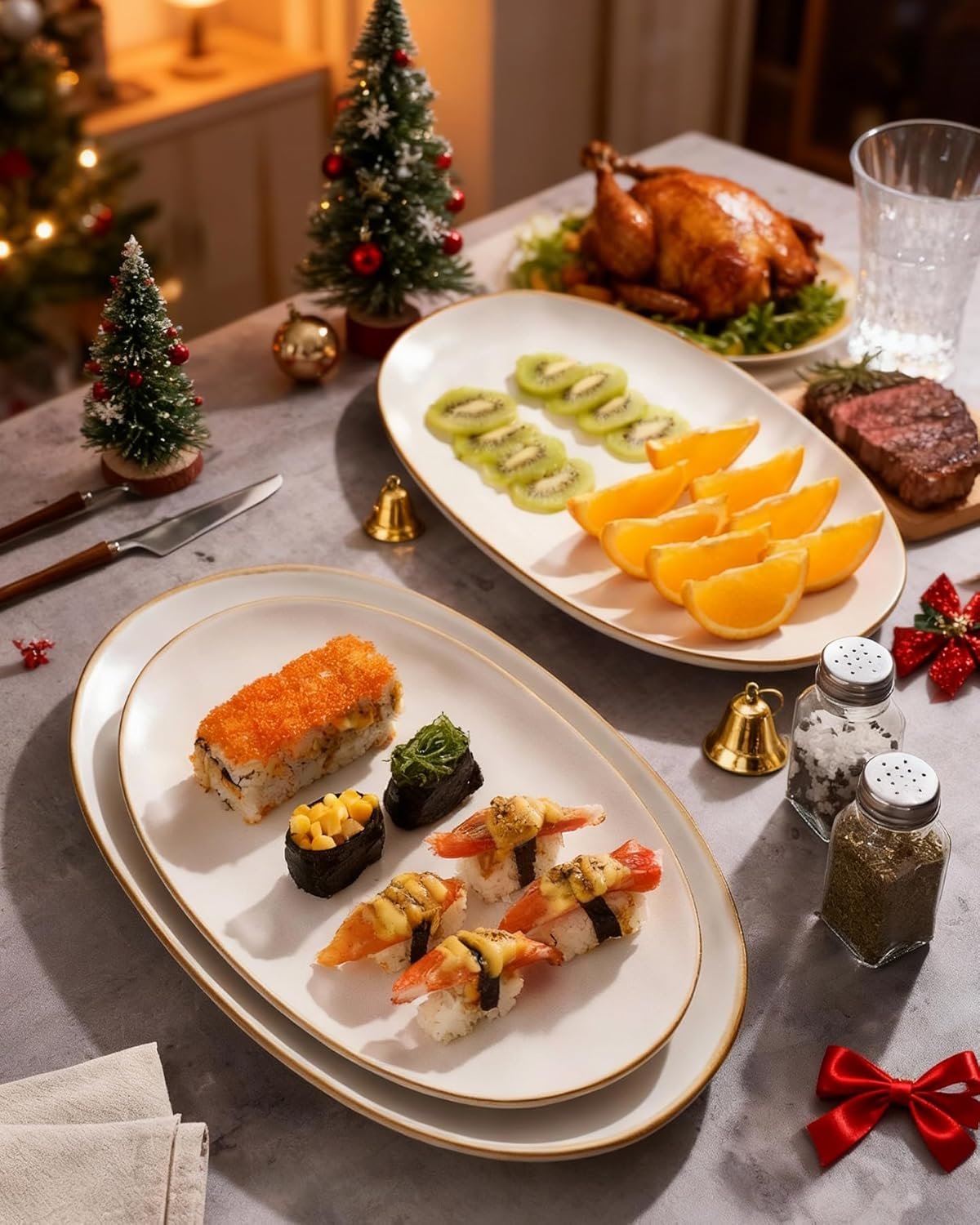 For Daily Needs: Our platters for serving food come in 3 sizes to meet all your needs in everyday life, not just for festivals and parties, you can even use them every day. These serving dishes for entertaining are great for turkey platter for serving food, entertaining, families, restaurants.