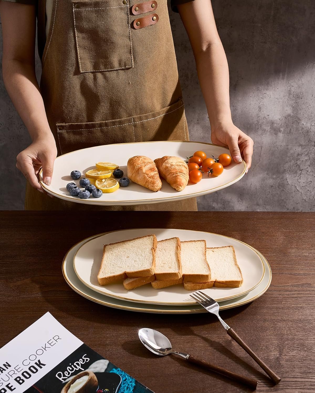 Sturdy and Enduring: Ocean Series serving platters for entertaining is made of premium stoneware, which is fired by high temperature and mix of all-natural clays. Each piece of the serving plates is sturdy and enduring.