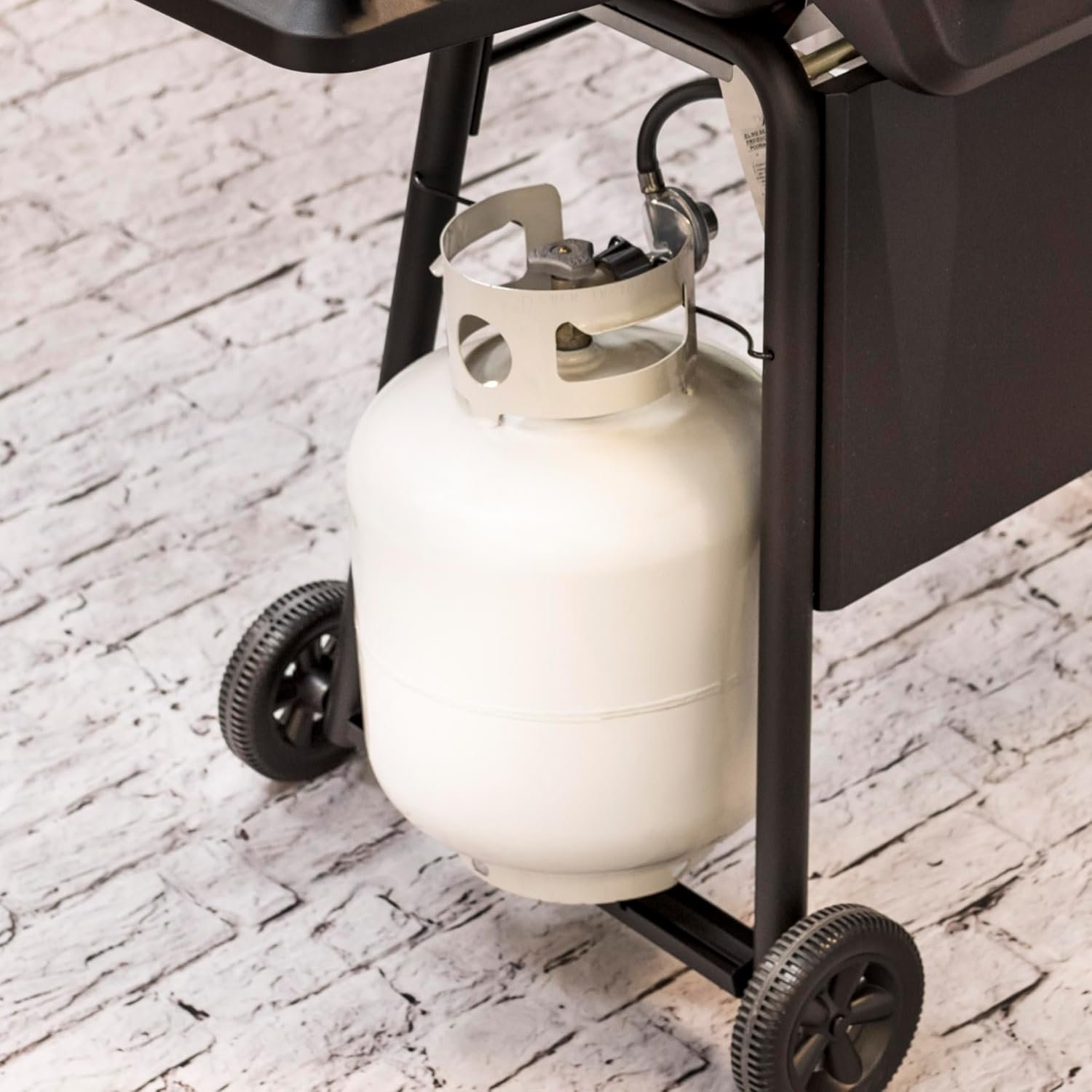 CART: The cart is designed with an integrated rack that holds the propane tank in place.