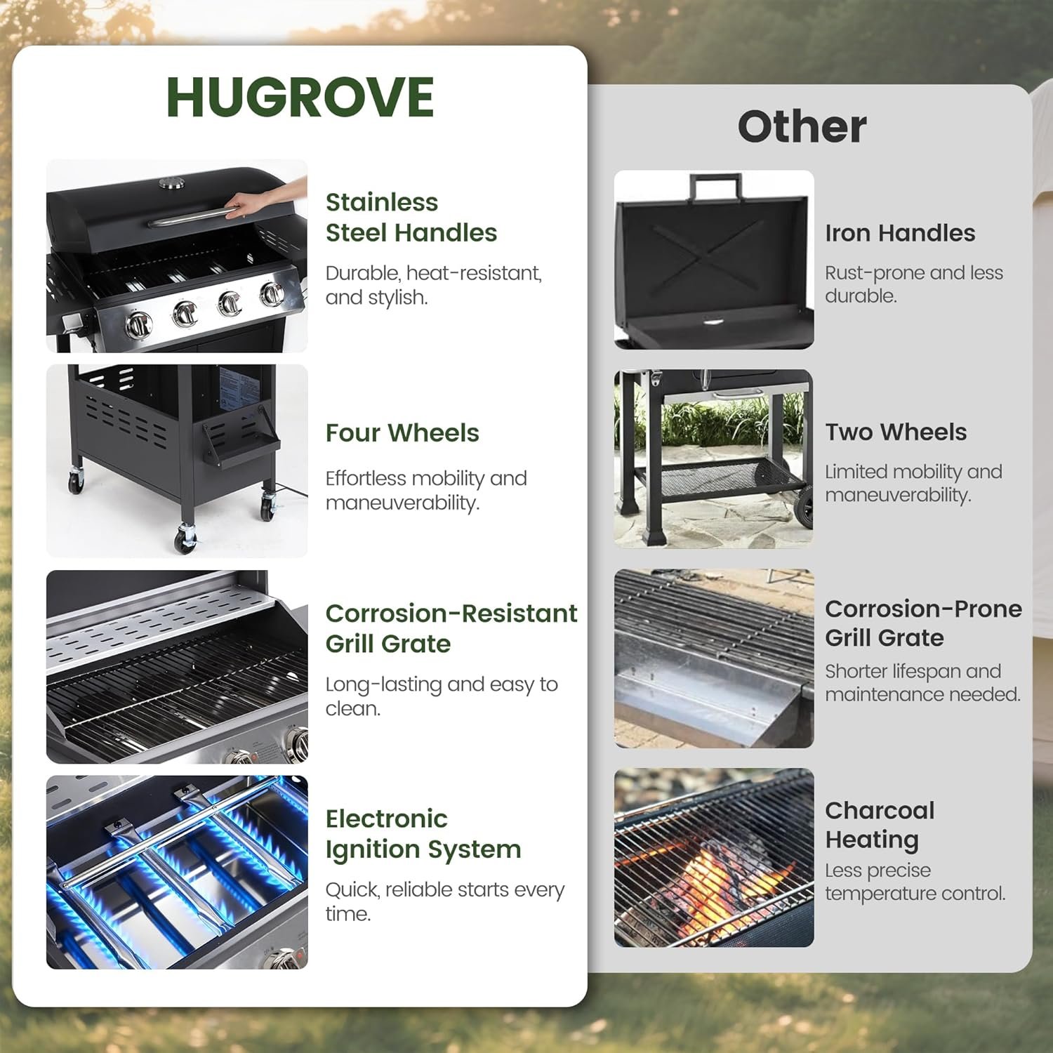 At Hugrove, we combine exceptional performance with a heartfelt user experience. Our grills are inspired by barbecue traditions from around the worldWhether it’s a family gathering, a camping adventure, or a romantic dinner, Hugrove becomes your essential companion, adding unique cooking joy to every occasionAs night falls, let our flames dance and warm your cherished moments together.